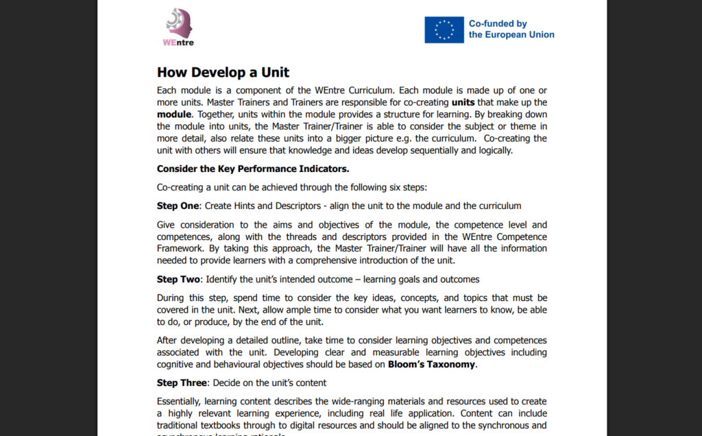 WEntre Curriculum – How Develop a Unit
