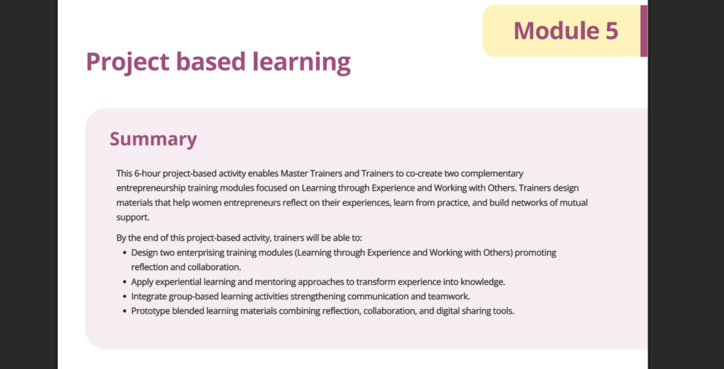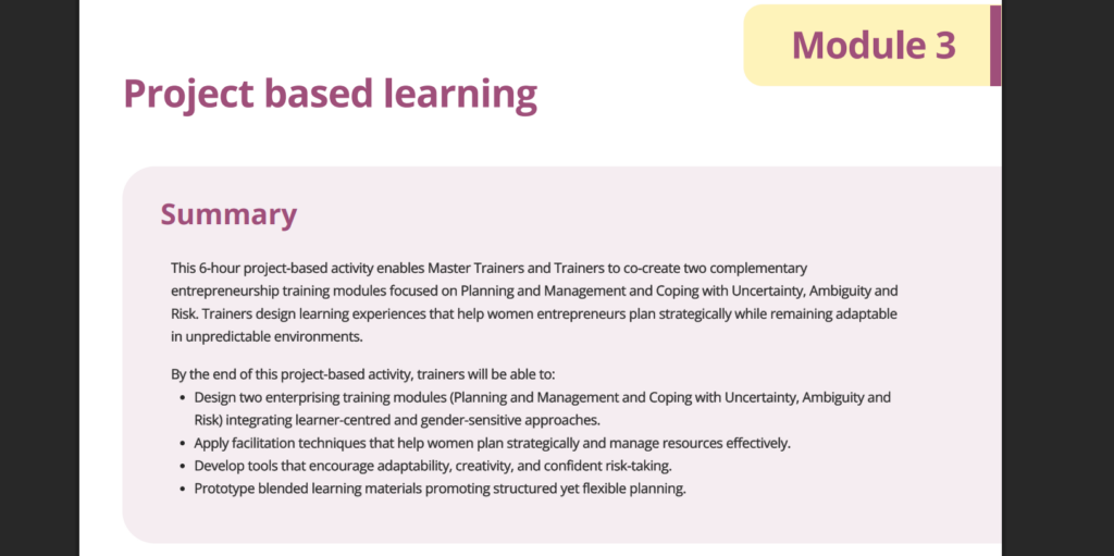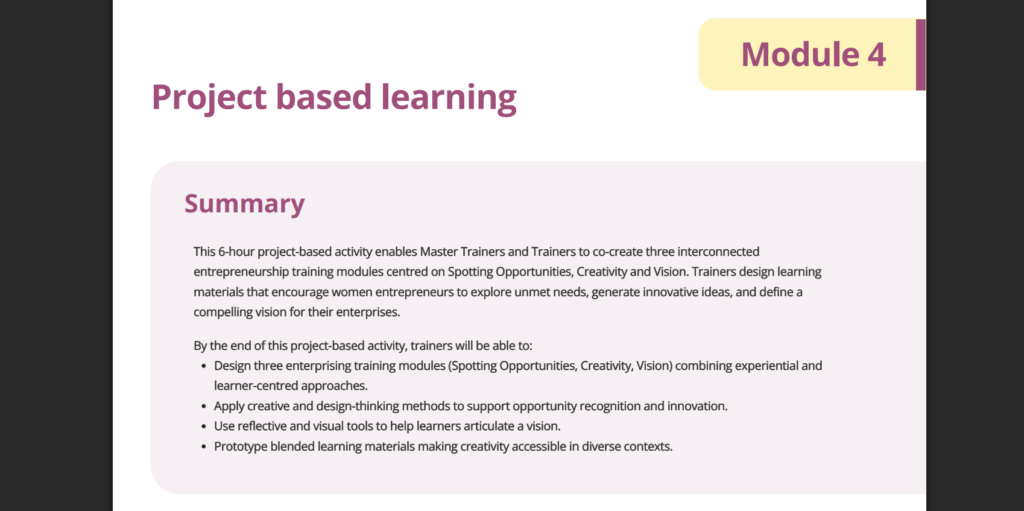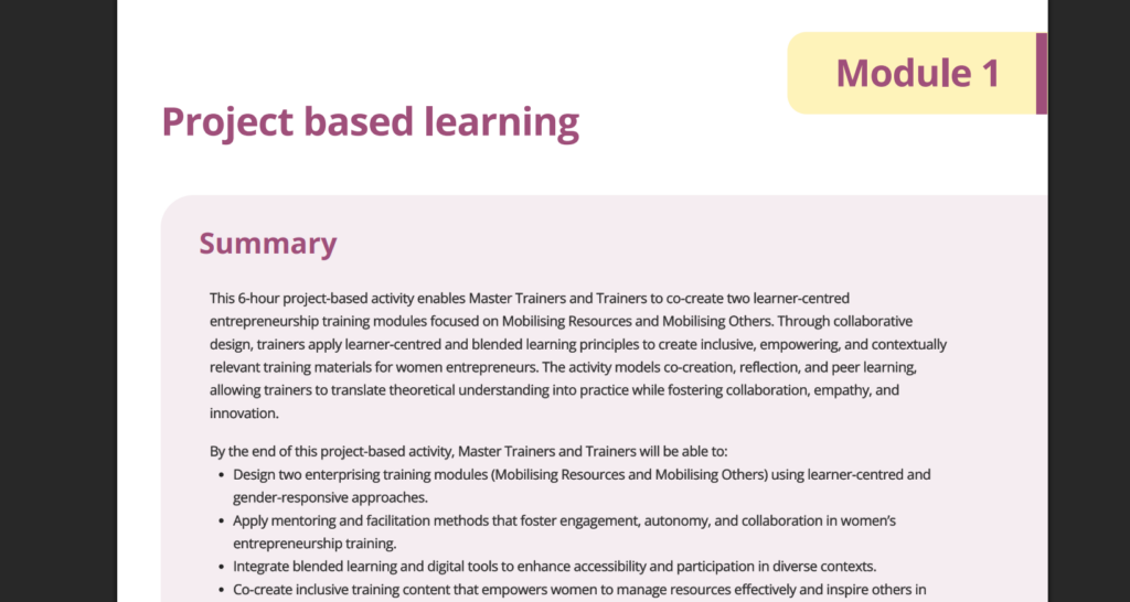 Explore the Pick & Mix library to access a curated collection of activities, exercises and resources designed to help you create engaging, flexible training sessions for women entrepreneurs.